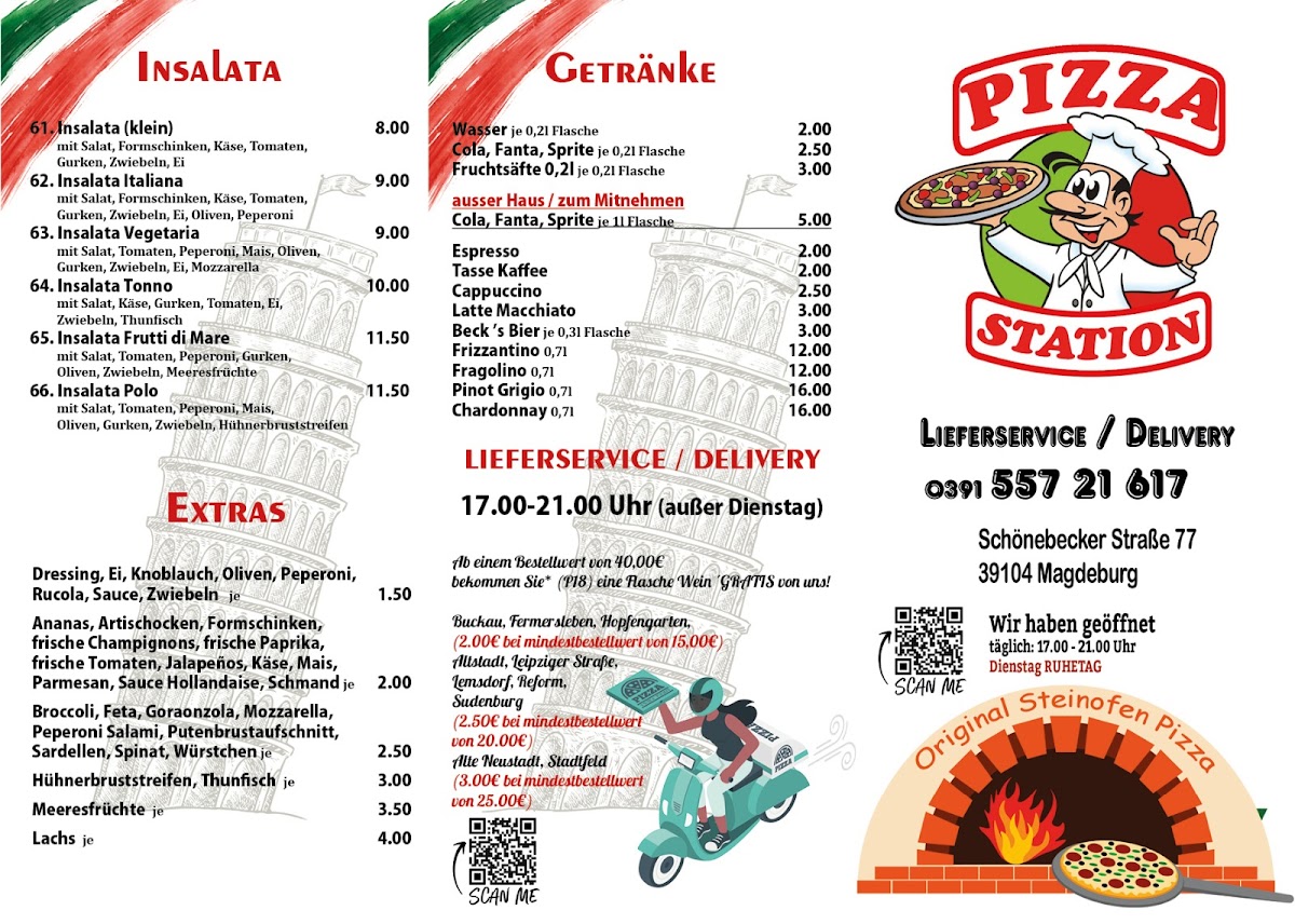 Welcome to PIZZA STATION, where pizza dreams come true in the heart of Magdeburg! Nestled at Schönebecker Str. 77, this pizza haven offers a delightful array of mouthwatering options. From the classic Pizza Napoletana to scrumptious sides like Tagliatelle Lachs and Pizzabrot, every dish is crafted with care and passion.